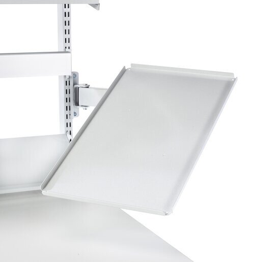 • Dreh- und neigbare Ablage mit Doppelarm (0-25°) mit Gummimatte