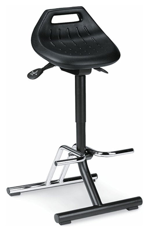 Die höhenverstellbaren Industrie-Stehhilfen von Bimos entlasten die Wirbelsäule und stellen sich durch die umfangreiche Auswahl an Fußvarianten auf so gut wie jeden Steharbeitsplatz und seine Anforderungen ein.