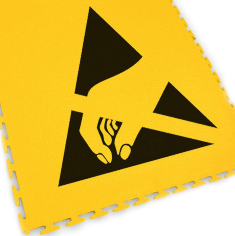 Bodenmarkierungsfliese mit ESD Logo, T-Lock, gelb, 500 x 500 x 7 mm, 1 Stück