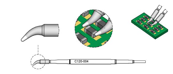 Die Lötspitzen der Serie C120 sind für PA120 Mikro-Pinzetten geeignet. Diese können zum Löten und Entlöten von Chip-Komponenten oder Dual-in-Line verwendet werden.