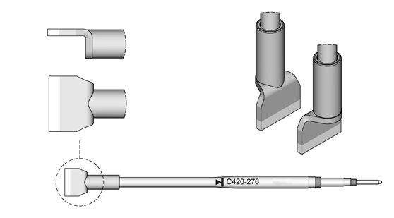 Die Spitzenserie C420 eignen sich zum Löten und Entlöten von SMD-Bauteilen. Die Lötspitzen sind kompatibel mit der Thermopinzette HT420 und werden einzeln verkauft.