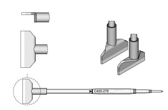 Die Spitzenserie C420 eignen sich zum Löten und Entlöten von SMD-Bauteilen. Die Lötspitzen sind kompatibel mit der Thermopinzette HT420 und werden einzeln verkauft.