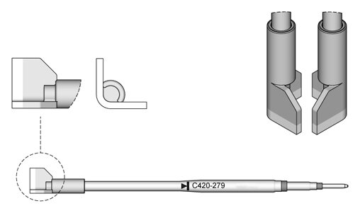 Die Spitzenserie C420 eignen sich zum Löten und Entlöten von SMD-Bauteilen. Die Lötspitzen sind kompatibel mit der Thermopinzette HT420 und werden einzeln verkauft.