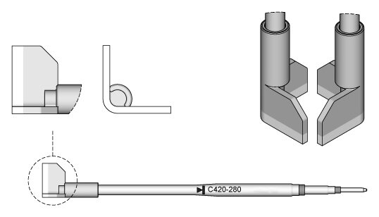 Die Spitzenserie C420 eignen sich zum Löten und Entlöten von SMD-Bauteilen. Die Lötspitzen sind kompatibel mit der Thermopinzette HT420 und werden einzeln verkauft.