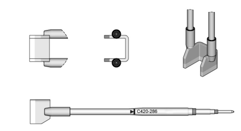 Die Spitzenserie C420 eignen sich zum Löten und Entlöten von SMD-Bauteilen. Die Lötspitzen sind kompatibel mit der Thermopinzette HT420 und werden einzeln verkauft.