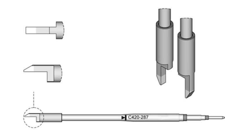 Die Spitzenserie C420 eignen sich zum Löten und Entlöten von SMD-Bauteilen. Die Lötspitzen sind kompatibel mit der Thermopinzette HT420 und werden einzeln verkauft.