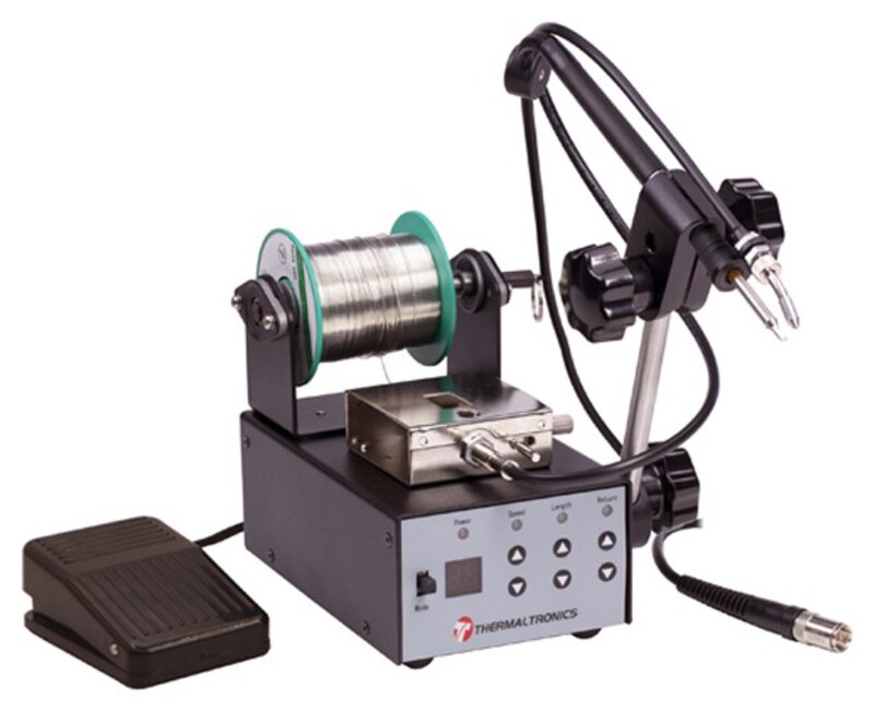 Das Thermaltronics AF-KIT Lotzuführungsset ermöglicht eine einhändige Bedienung bei Lötanwendungen. Das Kit ist als Zubehör zu bestehenden Thermaltronics Handlötgeräten erhältlich.