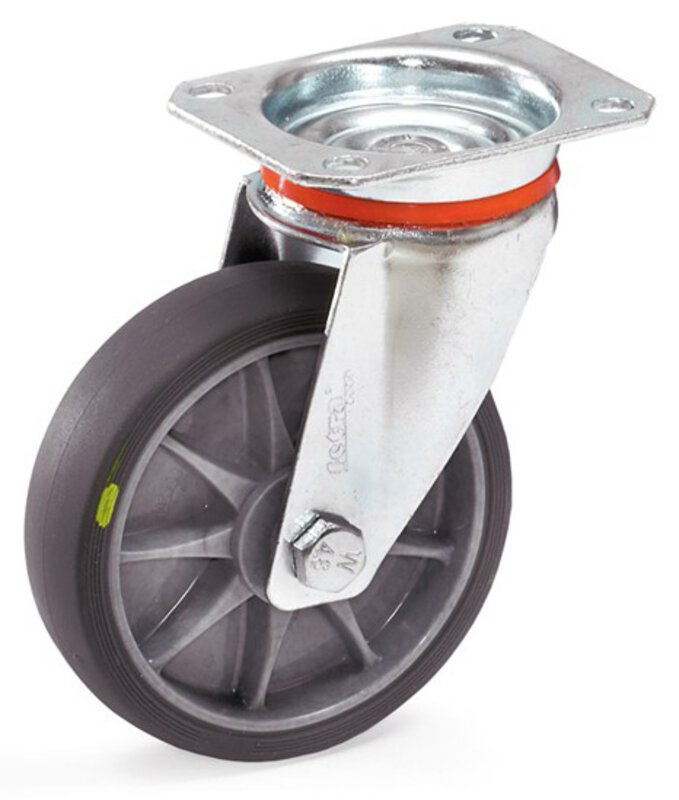 • Räder mit TPE-ESD-Bereifung (thermoplastisches Elastomer elektrisch leitfähig)