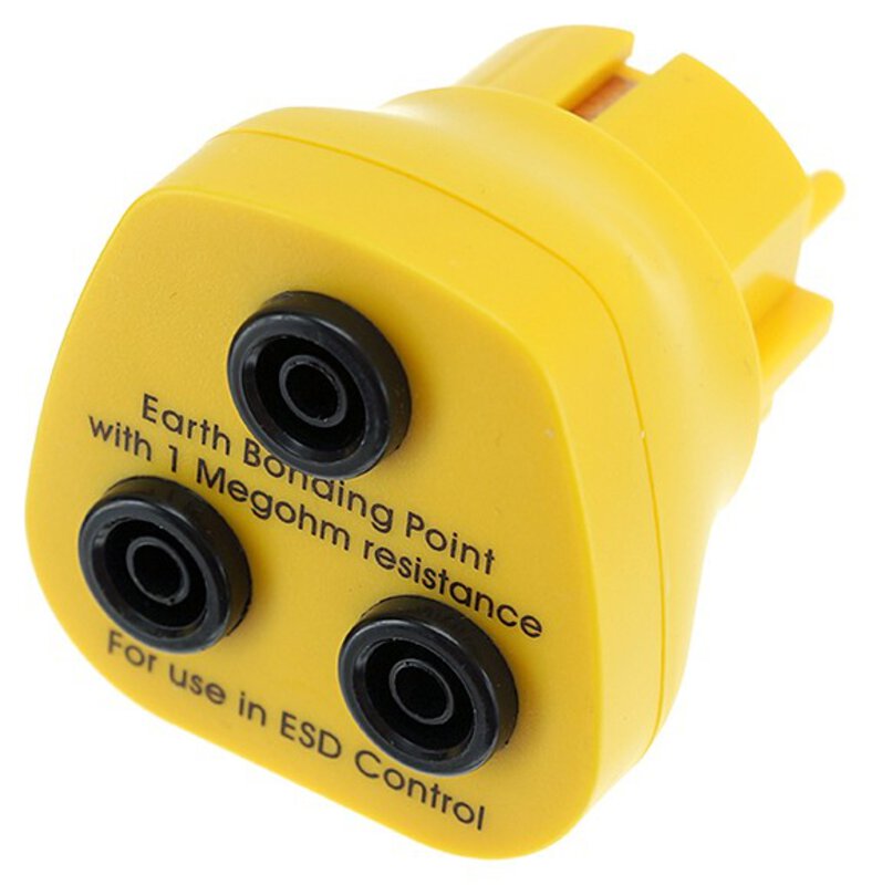 Der Safeguard ESD Erdungsstecker dient zum Schutz elektronischer Geräte und Bauteile vor Schäden durch elektrostatische Entladungen. Der Stecker verfügt über 3 x 4mm Bananensteckerbuchsen und bietet pro Anschluss einen 1 Megaohm Sicherheitswiderstand. Mit Hilfe der Steckerbuchsen können Sie ESD-sicher arbeiten und Schäden an sensiblen Bauteilen vermeiden. Der 1 Megaohm Sicherheitswiderstand sorgt dafür, dass die Ableitung der statischen Elektrizität effektiv und sicher erfolgt. Das gelbe Design des Steckers hilft es schnell zu erkennen und zugänglich zu machen.