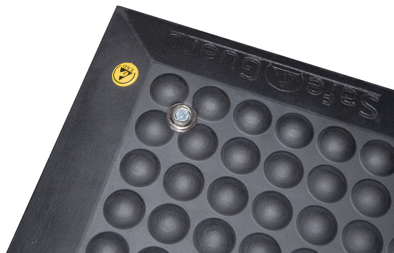 Die ESD Bodenmatte von SafeGuard ist besonders schonend für Bänder und Gelenke und somit bestens für Ihren Arbeitsplatz in der Produktion geeignet. Hinzukommen stoß- und rutschhemmende, sowie trittschallisolierende Eigenschaften. Zudem entspricht diese natürlich der DIN EN 61340-5-1.
