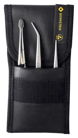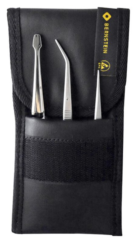 | Lieferumfang | 3-tlg. Satz mechaniker-Pinzetten bestehend aus: 5-107 Mechaniker-Pinzette, feine abgebogene Spitzen, fein gezahnt, 150 mm 5-121 Mechaniker-Pinzette, gerade - fein - spitz, fein gezahnt, 120 mm 5-155 Kreuzpinzette, (Festhaltepinzette), schaufelartige Greifbacken, fein gezahnt, 160 mm |