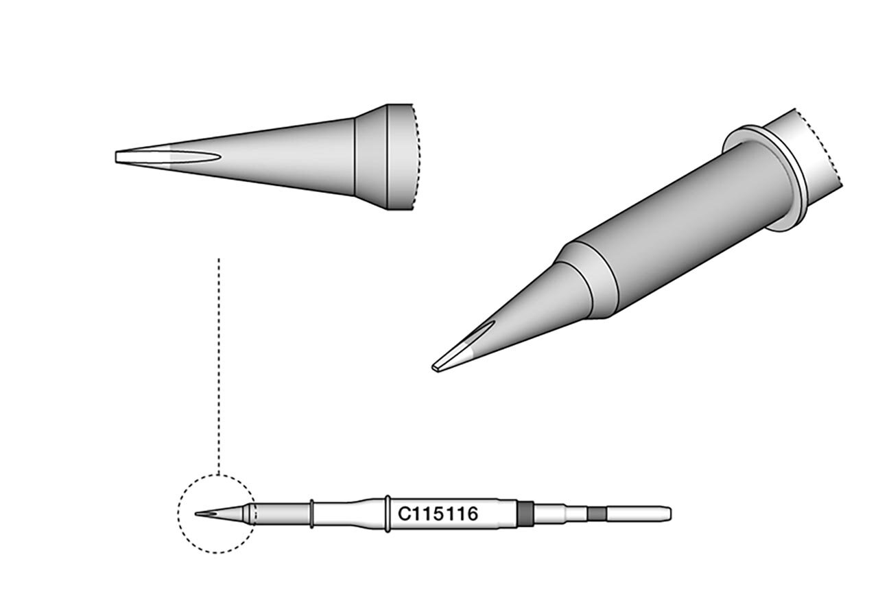 Die Lötspitzen der Serie C115 eignen sich zum Löten und Reparieren sehr kleiner Bauteile. Diese sind kompatibel mit NT115-A, NP115-A und AN115-A Nano Löthandstücken.