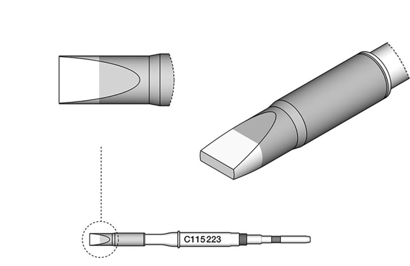 Die Lötspitzen der Serie C115 eignen sich zum Löten und Reparieren sehr kleiner Bauteile. Diese sind kompatibel mit NT115-A, NP115-A und AN115-A Nano Löthandstücken.