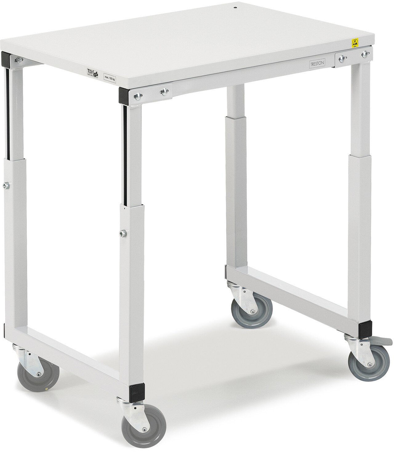 Der SAP-Tischwagen bietet eine leicht zu manövrierende, zusätzliche Arbeitsfläche. Durch Feststeller an den Rollen kann der Tischwagen fest am Platz fixiert werden. Erhältlich in drei Größen, um den unterschiedlichen Anforderungen gerecht zu werden. Eine Unterplatte und ein Griff, um das Manövrieren des Wagens zu erleichtern, sind als Zubehör erhältlich. Die Wagenhöhe kann über Inbusschrauben eingestellt werden, so dass der Wagen nach Bedarf angepasst werden kann. Der SAP Wagen wird gern zusammen mit den Treston Arbeitstischen der Serie TP verwendet.