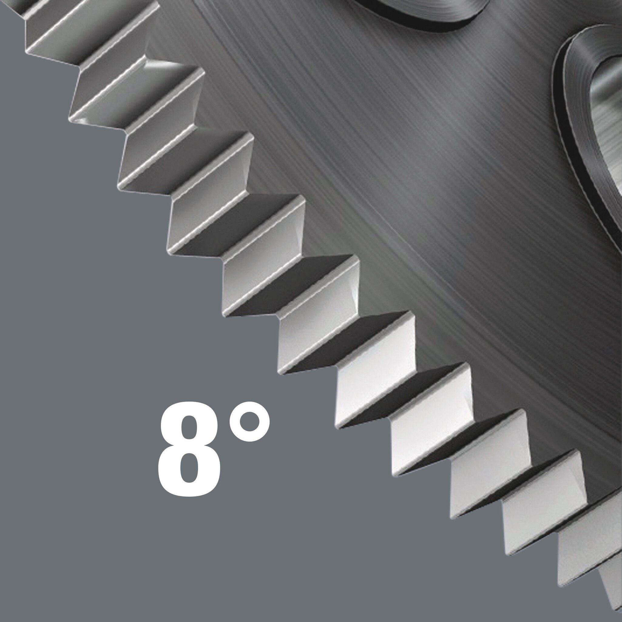 • Feinverzahnung für geringen Rückholwinkel, Umschaltring (rechts, fest, links)