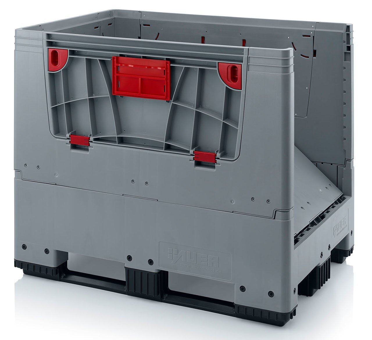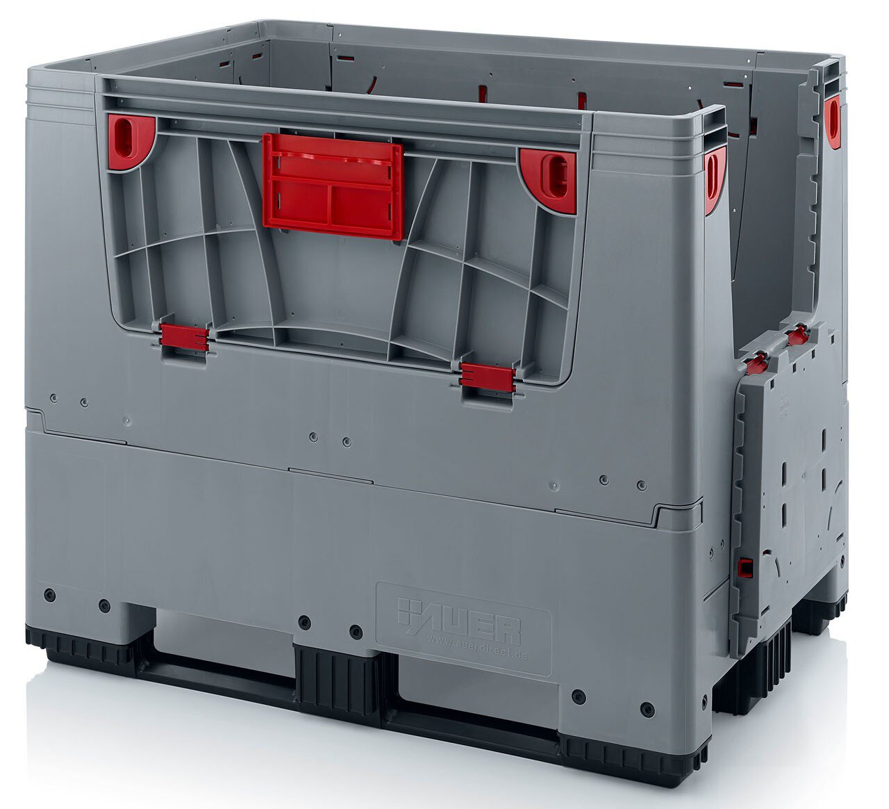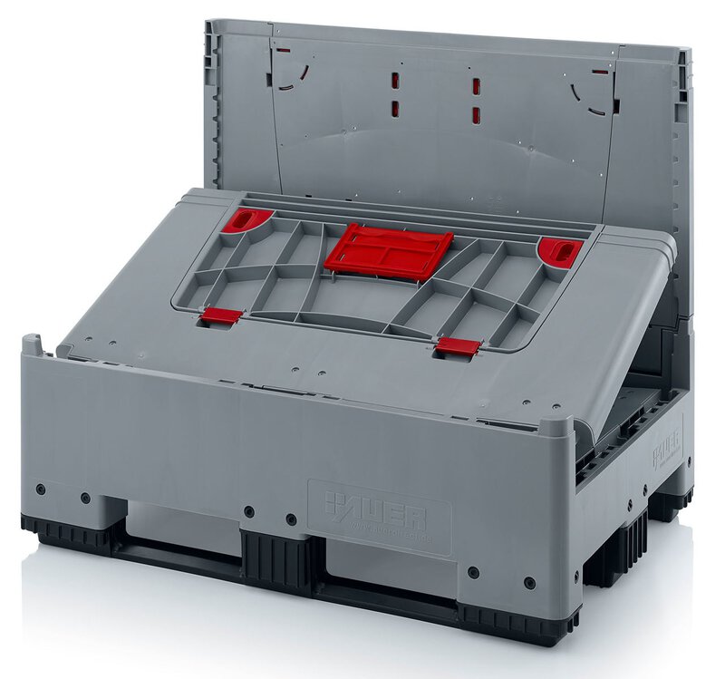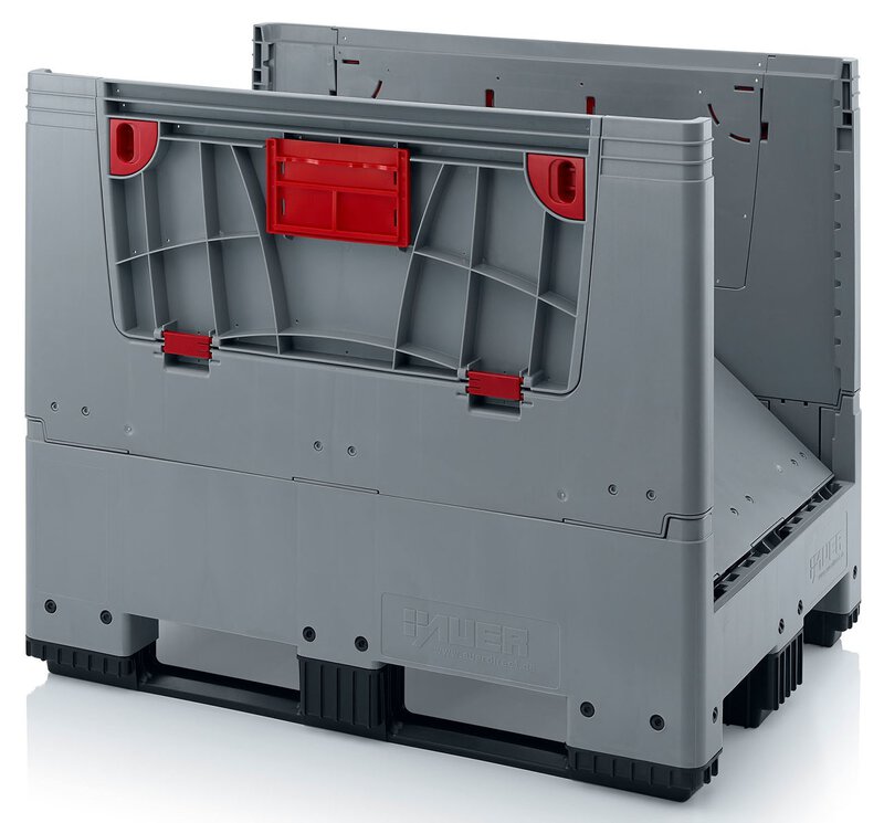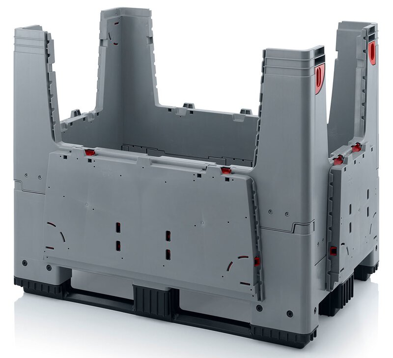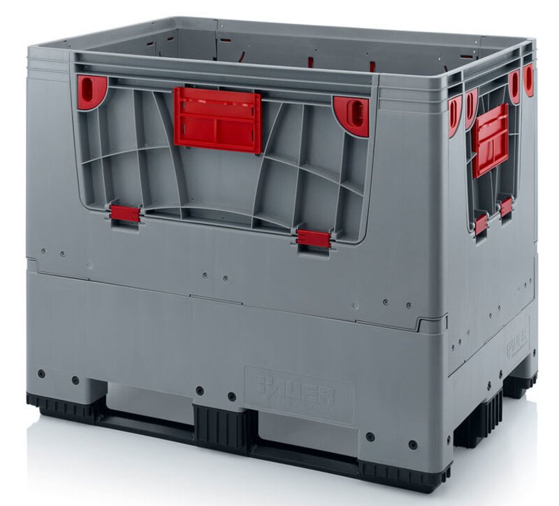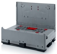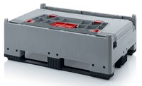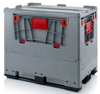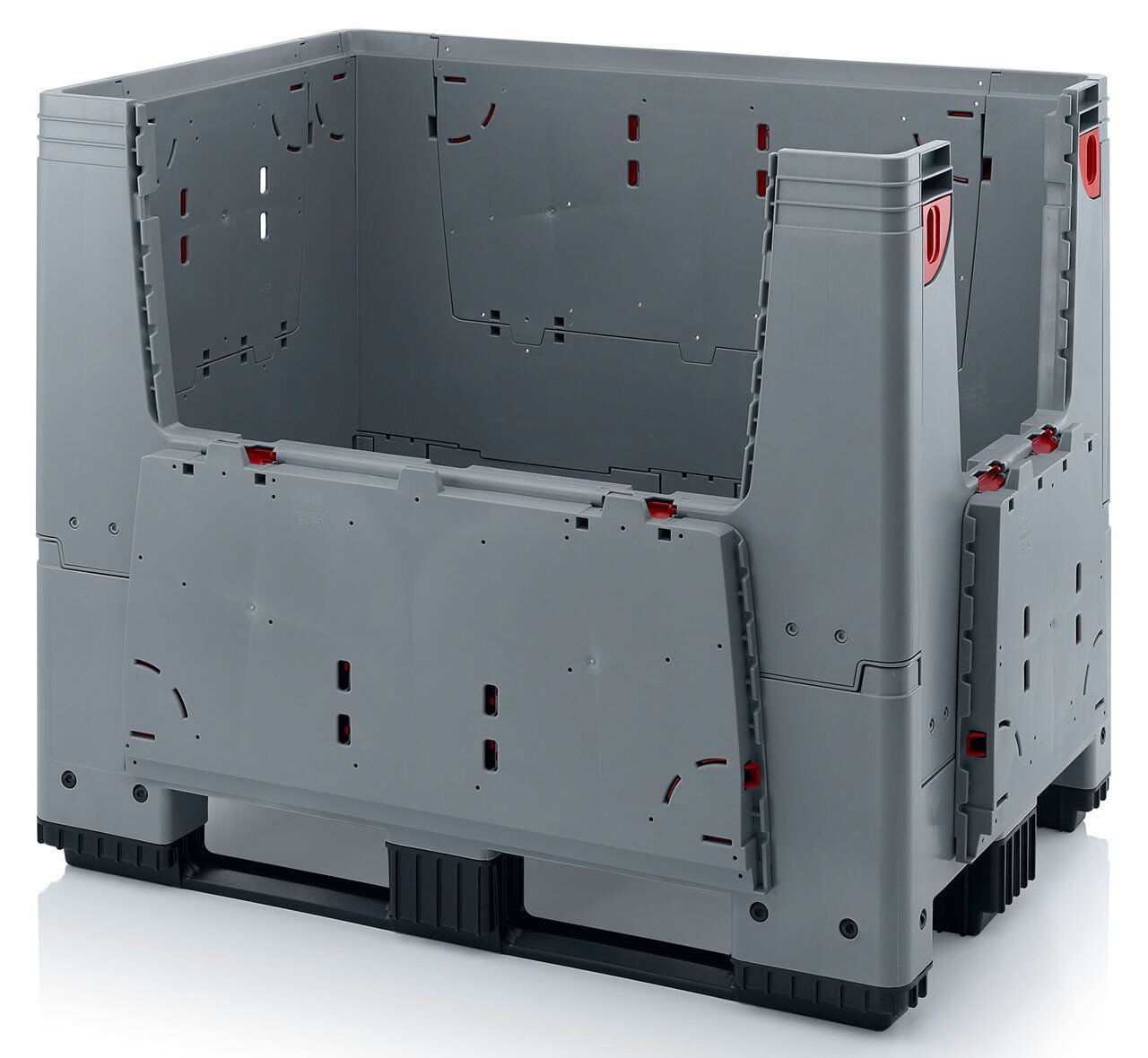 Klappbare ESD-Bigbox mit 4 Eingriffsklappen, 3 Längskufen, schwarz, 1200 x 800x 1000 mm