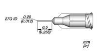 In der Produktpalette von JBC finden sich verschiedene Ausführungen von Dosiernadeln und konischen Spitzen für eine präzise Dosierung verschiedener Medien. Die Dosiernadel ND27S6 aus Edelstahl wird für Lötpaste Typ 5 empfohlen. Alle Dosiernadeln und Dosierspitzen sind mit dem manuellen Lötpasten-Spender DPM und den dazugehörigen Dosierkartuschen SB03CC und SB05CC kompatibel. Im Lieferumfang ist eine VPE mit 10 Stück Dosiernadeln enthalten.
