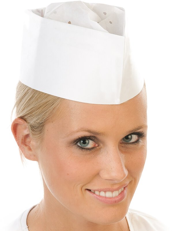 Die Schiffchenmütze SERVICE besteht aus ungeprägtem Papier. Es ist oben mit einem luftdurchlässigen Einsatz verschlossen. Das Schiffchen SERVICE ist auf jede Kopfgröße einstellbar. Es ist rein in weiß oder mit einer roten bzw. blauen Zierkante erhältlich. Die Schiffchenmütze SERVICE eignet sich für den Einsatz in der Gastronomie, Großküche, Lebensmittel-Industrie.