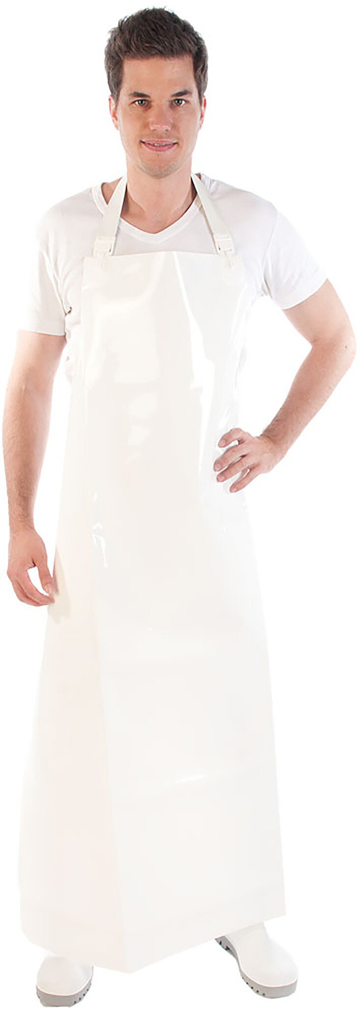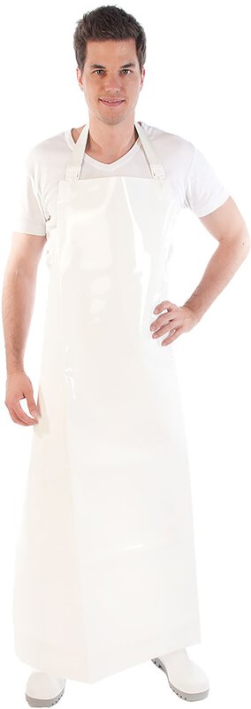 PU Schürze, Feste Latzschürzen PU - ideal für Lebensmittel-Industrie und Gastro: Diese Schürze besteht aus Polyurethan ohne Gewebeeinlage. Die Schürze verfügt über eine extrem glatte Oberfläche und hat keine Säume oder Nähte, wodurch sie pflegeleicht und absolut hygienenisch ist. Die Schürze ist resistent gegen tierische Fette und Öle. Sie ist außerdem sehr leicht, aber zugleich auch sehr reißfest und dehnbar. Die Latzschürze aus Polyurethan bietet Einsatzmöglichkeiten in der Fleischverarbeitung, der Lebensmittelindustrie oder Spülküchen. Vorteile PU Latzschürze ca. 300my im Überblick