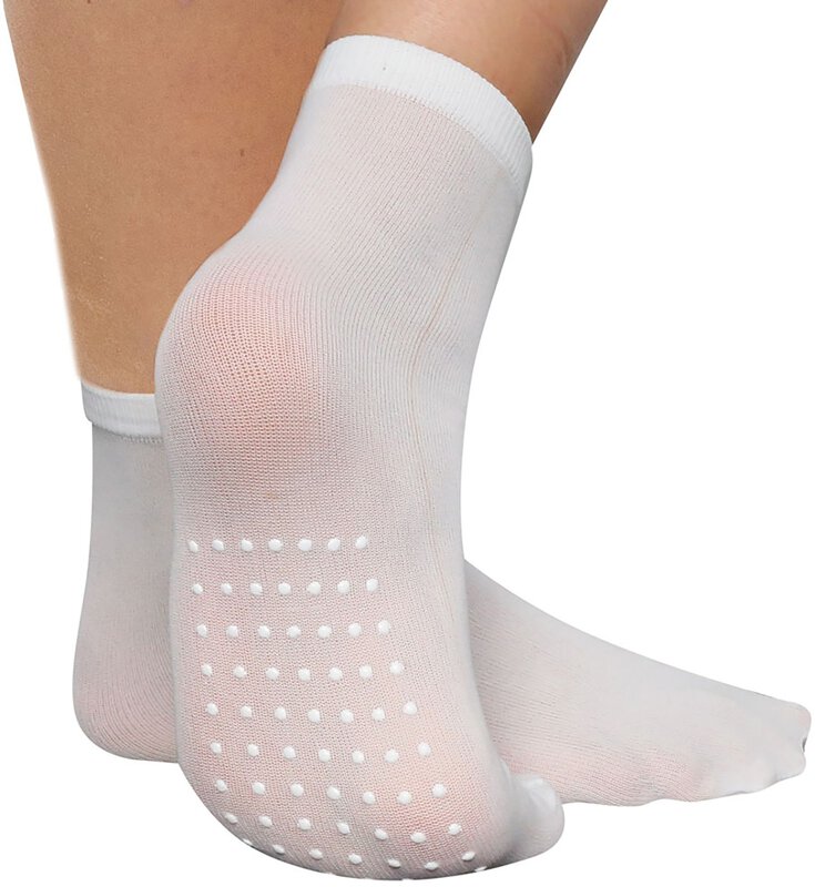 Einwegsocken ANTI-RUTSCH von Hygostar: Die Anti-Rutsch-Socken sind aus 100% Polyamid gefertigt und auf der Fußsohle mit rutschfesten PVC-Noppen versehen. Sie sind extrem dehnbar und hautfreundlich und sorgen für ein sicheres Auftreten selbst bei nassen Böden. Die Einwegsocken Anti-Rutsch eignen sich für Patienten und Pflegeheime, aber auch für Indoor-Spielplätze und Sporthallen.