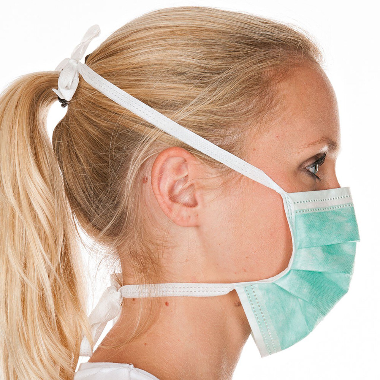 Hygostar Mundschutz PP, grün, Typ II, 3-lagig, Bindebänder, VPE: 50 Stück