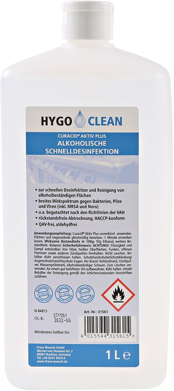 HygoClean Alkoholische Schnelldesinfektion 1 Liter, für LMP / Curacid Aktiv Plus