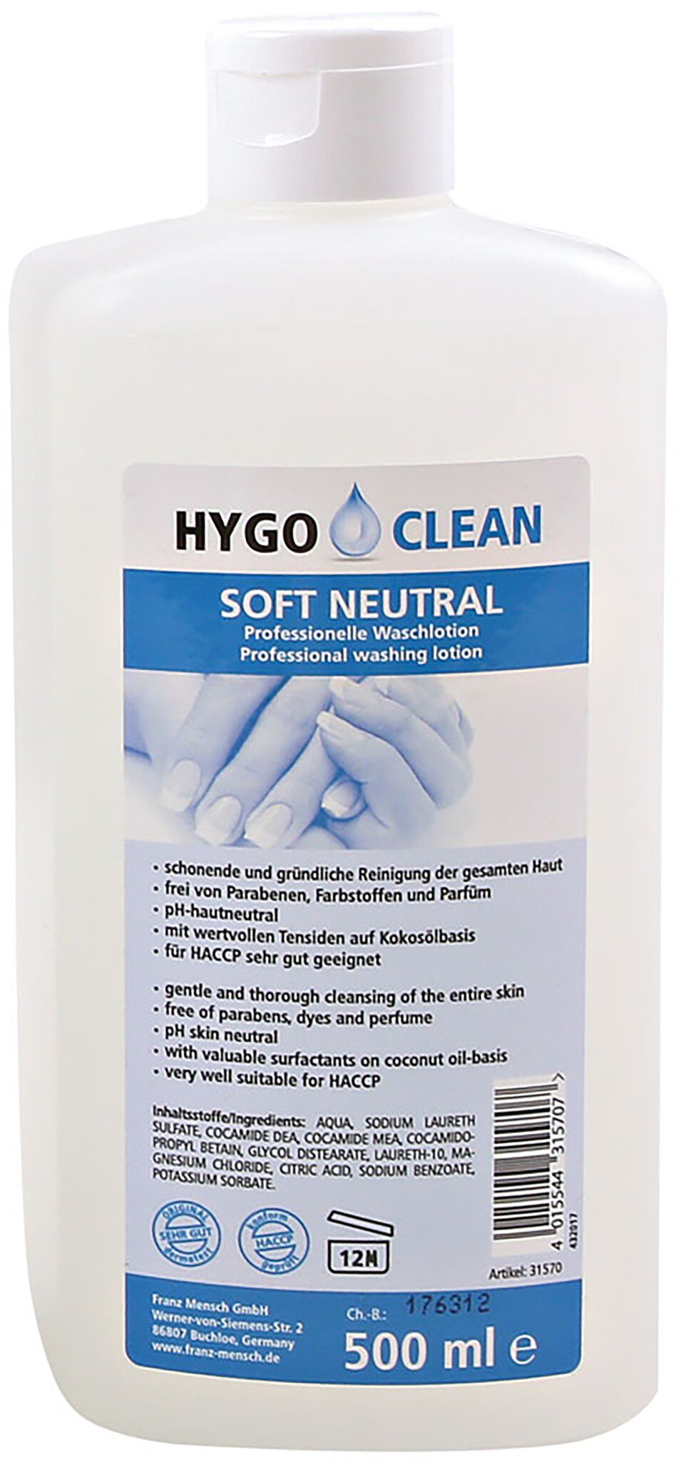 HygoClean Seife für Handreinigung, 0,5 Liter, geruchsneutral
