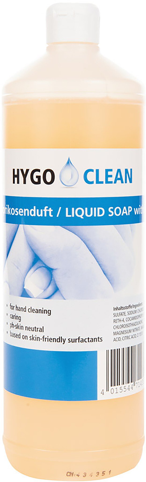 HygoClean Flüssigseife zur Händereinigung, 1l, Aprikose pH-hautneutral, pflegend