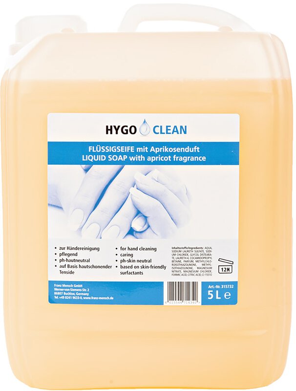 HygoClean Flüssigseife zur Händereinigung, 5l, Aprikose pH-hautneutral, pflegend