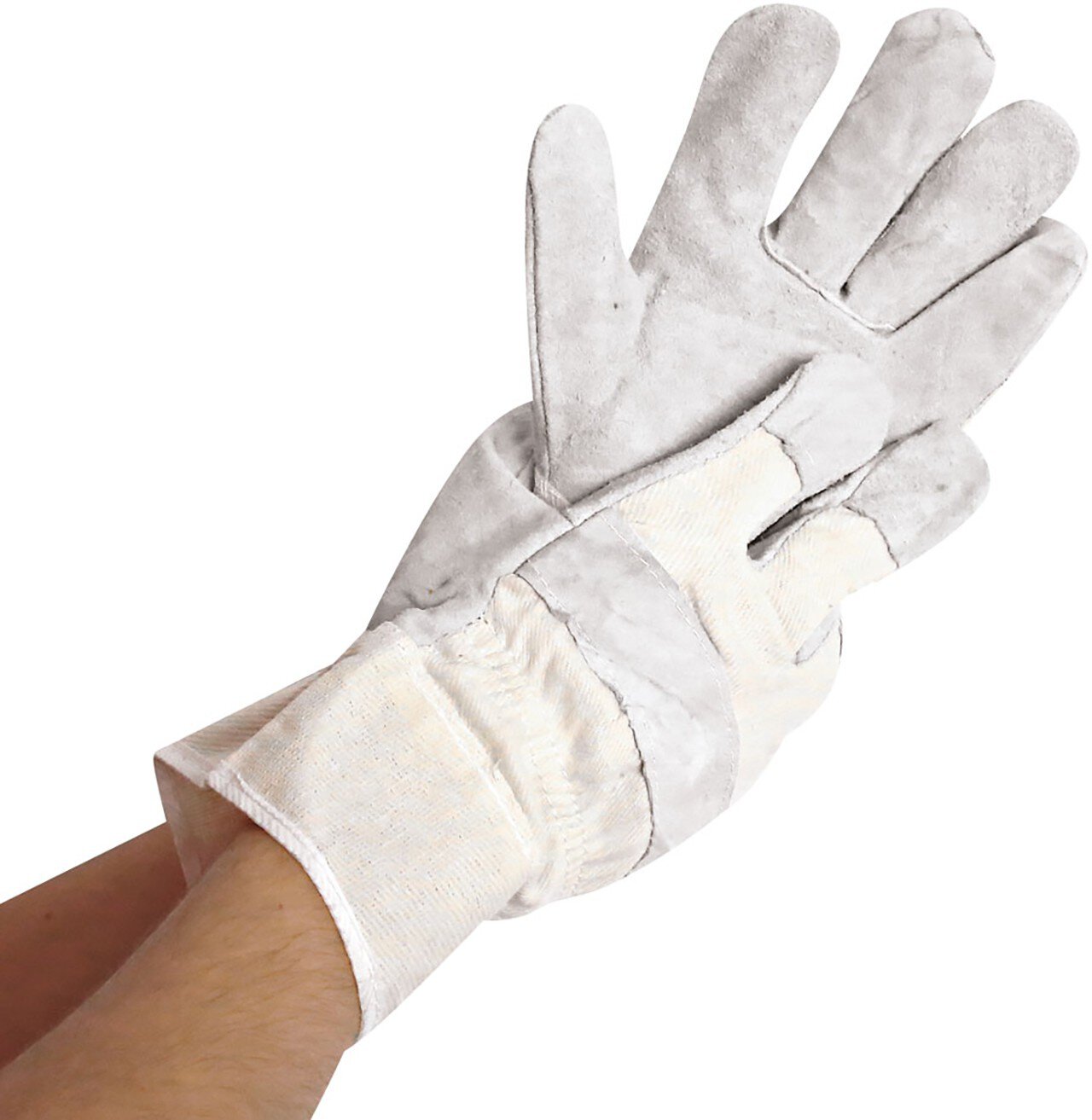 Arbeitshandschuhe Work von Hygostar: Der Arbeitshandschuh WORK ist aus Rindspaltleder mit einem leichten Futter aus Baumwolle. Der Handrücken ist aus weißem Canvas. Der Rindspaltleder-Handschuh WORK ist in bester Qualität und mit durchgehenden Handinnenflächen. Er besitzt eine Sicherheitsstulpe und ist reißfest sowie abriebfest. Der Arbeitshandschuh Work ist ein sehr günstiger Universalhandschuh für mittelschwere Belastungen.