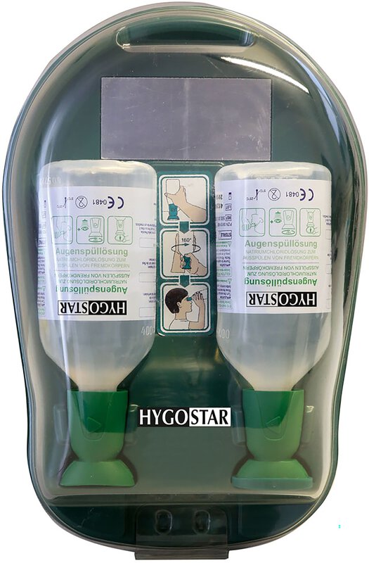 Damit Ihre Augenspülung jederzeit hygienisch aufbewahrt und im Notfall schnell griffbereit ist, gibt es spezielle Augenspülstationen. Eine Augenspülstation ist eine Wandhalterung für ein komplettes Set mit zwei Augenspülflaschen. Die Augenspülstation Eye Care Medidrop I enthält zwei Augenspülflaschen mit jeweils 500 ml Natriumchloridlösung (,9 %). Die Augenspülung ist gebrauchsfertig und kann im Ernstfall sofort eingesetzt werden.Eine Augenspülung mit einer Natriumchloridlösung ist besonders zum Ausspülen von Fremdkörpern geeignet, z.B. Staub, Schmutz oder Splitter.