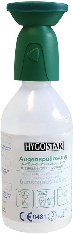 sterile Augenspül-Flasche mit Kochsalz-Lösung (NatriumChlorid) zum Ausspülen von Verunreinigungen im Auge (Staub, Schmutz, Holz- und Metallsplitter, etc. ) kann für alles, außer Silber, verwendet werden - auch bei Säuren oder Laugen sehr verträglich, körperneutral Spülzeit: 1 Flasche = ca. 5 Minuten (Je nach Schwere der Verletzung werden 15 Minuten empfohlen, dann einfach 3 Flaschen nacheinander spülen)