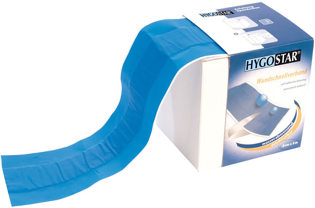 aus wasserabweisender PE-Folie detektierbar durch innenliegende Metallfolie blaue Farbe und damit immer gut sichtbar 5 m auf Rolle, in der praktischen Spenderbox zum selbst Abschneiden