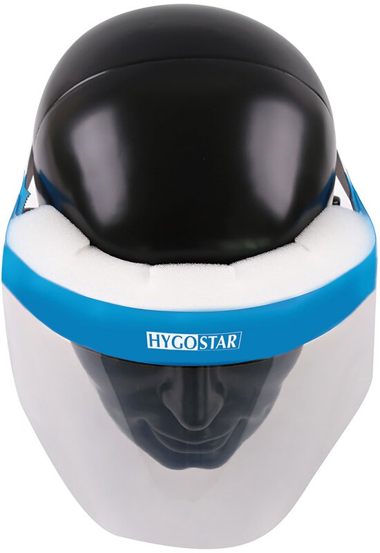 Schutzvisier 3S aus PET von Hygostar: Dieses Schutzvisier besteht aus transparentem PET und bietet dem Anwender jederzeit optimale Sicht, da es doppelseitig beschlagfrei und nicht reflektierend ist. Das Kunststoff-Schutzvisier schützt vor allem auch die Augen vor Flüssigkeitsspritzern und ist zudem vollständig desinfizierbar. Ein weiterer Vorteil ist vor allem, dass das Visier genug Freiraum bietet um leicht Gesichts- und Atemschutzmasken zu wechseln. Zudem ist es komfortabel bei mehrstündigen Einsätzen und auch ideal für Brillenträger. Das Schutzvisier aus PET besteht aus einem weichen Schaumstoffkissen an der Stirn und einem flexiblen Gummiband für optimalen Sitz. Hygienischer Nebeneffekt: Das Schutzvisier wirkt wie eine Barriere und verhindert, dass sich der Träger mit den Händen ins Gesicht fasst. Somit ist eine weitere Kontaminationsgefahr verringert. Eigenschaften des Schutzvisiers aus PET im Überblick: