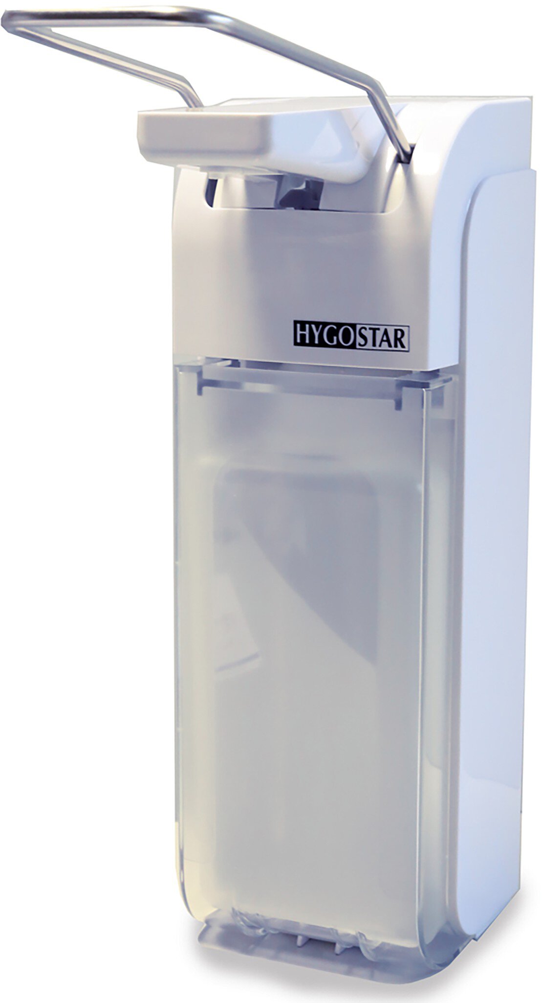 HygoClean Armhebelspender, weiß, mit Wandhalterung für 500ml/1.000ml Flaschen, mit Adapter