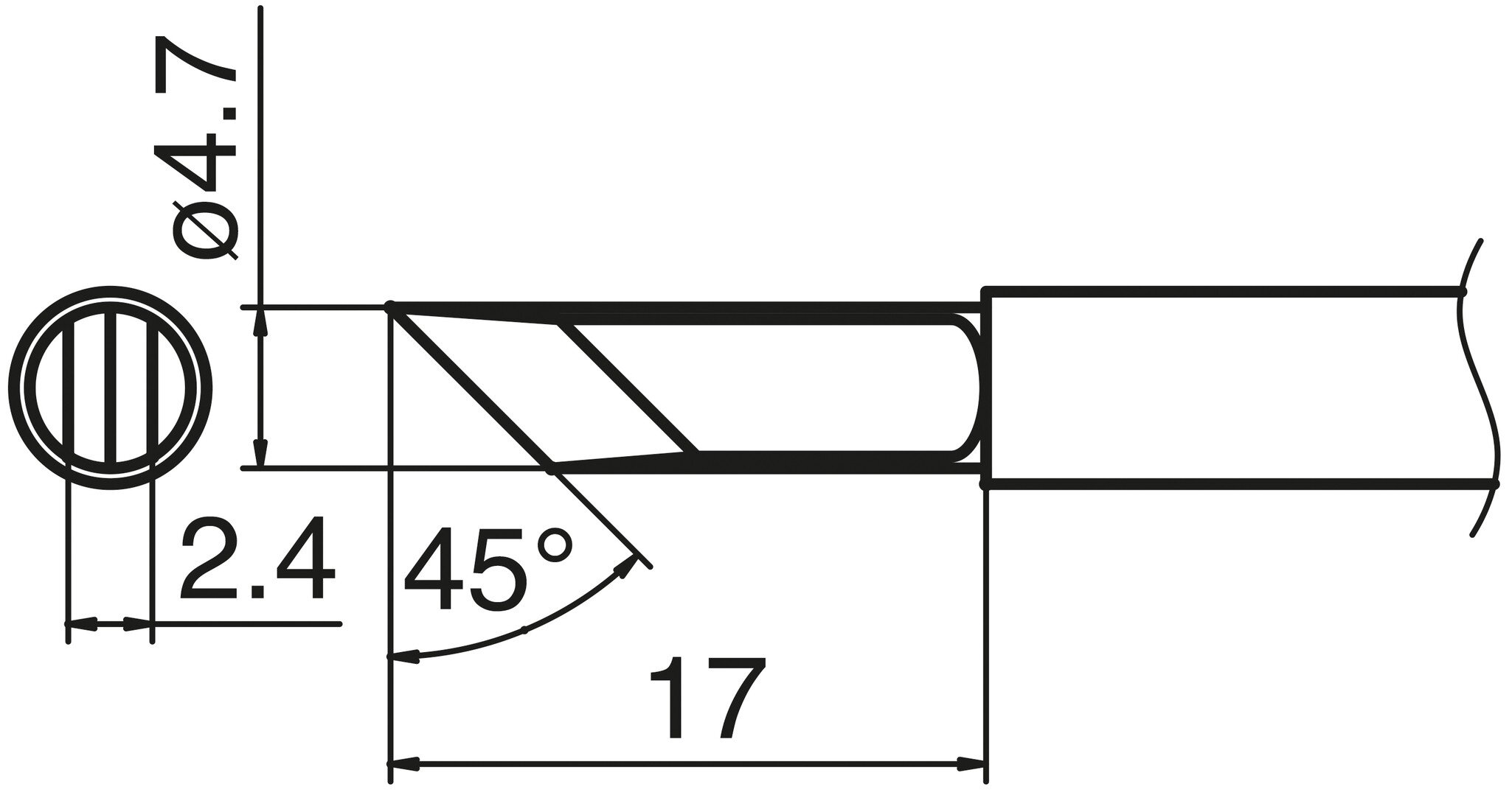 | Spitzenausrichtung | abgeschrägt |