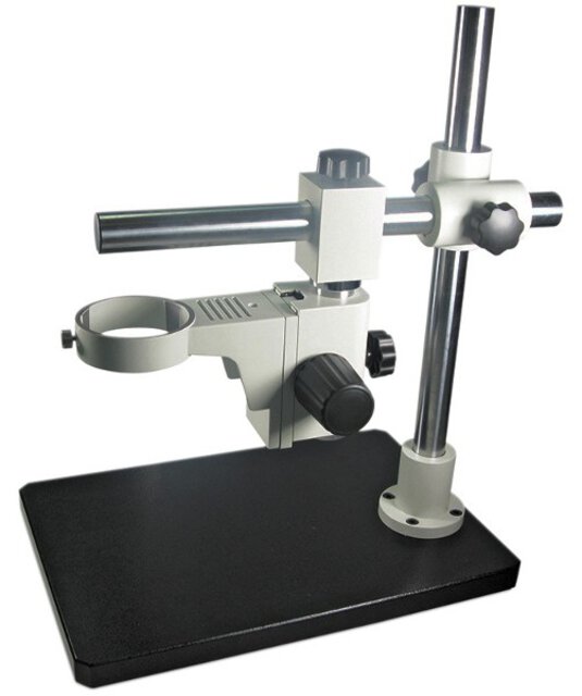 Stativ: Hohe Stabilität durch massive Basisplatte. Für große Objekte und Arbeitsabstände geeignet.