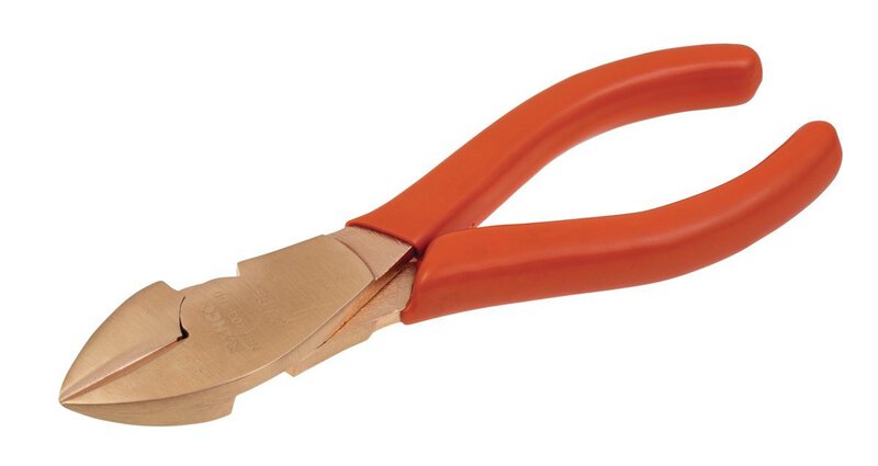 Funkenfreie Werkzeuge werden in Bereichen eingesetzt, in denen durch Funkenflug eine potenzielle Feuer- und Explosionsgefahr besteht. Hochleistungs-Seitenschneider aus Kupferberyllium, funkenfrei, 160 mm.