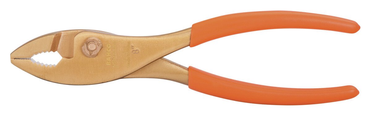 Funkenfreie Werkzeuge werden in Bereichen eingesetzt, in denen durch Funkenflug eine potenzielle Feuer- und Explosionsgefahr besteht. Wasserpumpenzangen aus Kupferberyllium, mit Gleitgelenk, funkenfrei, 200 mm.