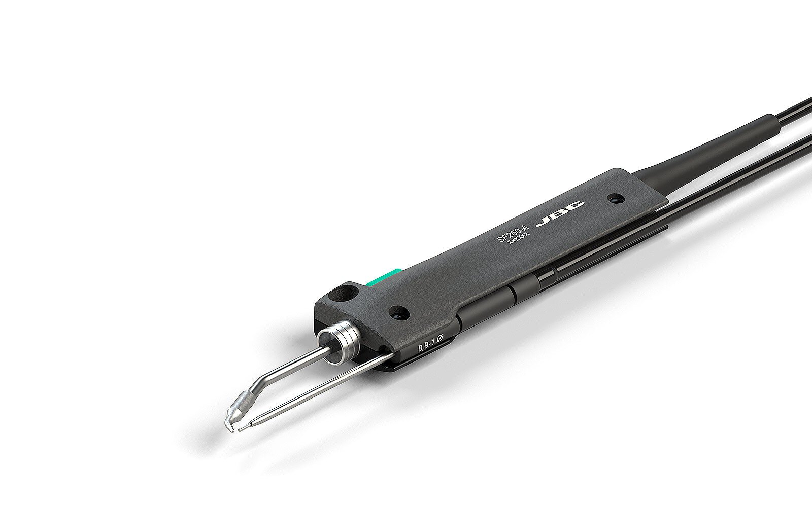 Der SF250 eignet sich für umfangreiche Lötarbeiten, die eine freie Hand erfordern. Mit einem Knopfdruck wird der Lötdraht automatisch zugeführt. Dieser Lötkolben mit automatischer Zuführung eignet sich für die Zuführung von perforiertem Lötdraht. Dies bedeutet einen besseren Fluss des Flussmittels und eine bessere Ausgasung, wodurch ein Verspritzen von Lot und Flussmittel vermieden wird. Das Gerät verfügt über eine Verdrehsicherung für eine optimale Ausrichtung der Kartusche. Der automatische Lötkolben kann mit dem Ständer SF250-SE (separat erhältlich) an eine automatische Lötdrahtzuführung SF und gleichzeitig an eine modulare Station angeschlossen werden. Er arbeitet mit C250 Kartuschen und wird mit der Kartusche C250403 und dem Führungsset (0022295) für Lötdraht Ø 0,9 - 1,0 mm geliefert.