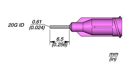 In der Produktpalette von JBC finden sich verschiedene Ausführungen von Dosiernadeln und konischen Spitzen für eine präzise Dosierung verschiedener Medien. Die Dosiernadel ND20S6 aus Edelstahl wird für Lötpaste Typ 3 empfohlen. Alle Dosiernadeln und Dosierspitzen sind mit dem manuellen Lötpasten-Spender DPM und den dazugehörigen Dosierkartuschen SB03CC und SB05CC kompatibel. Im Lieferumfang ist eine VPE mit 10 Stück Dosiernadeln enthalten.