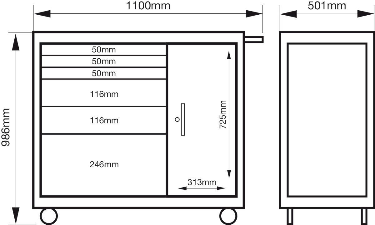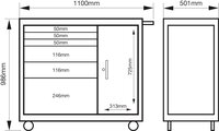• Extragroßer Werkstattwagen mit 6 Schubladen und seitlichem Zusatzschrank