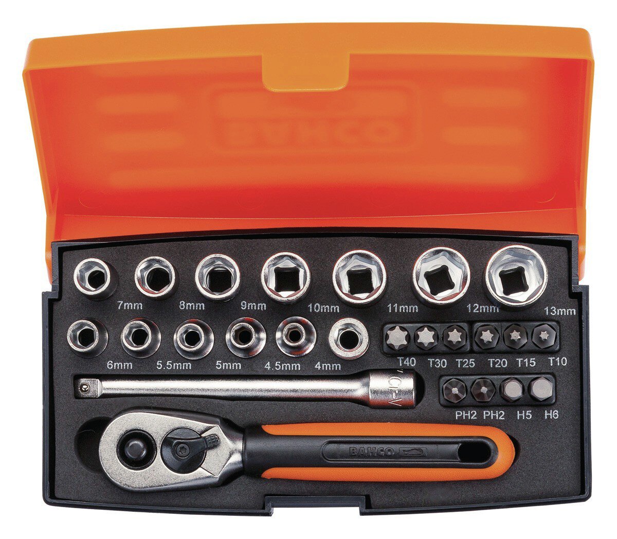 1/4" Steckschlüssel-Satz, metrisch, Sechskant inklusive Schraubendreher-Bits mit Bithalter, 25-teilig