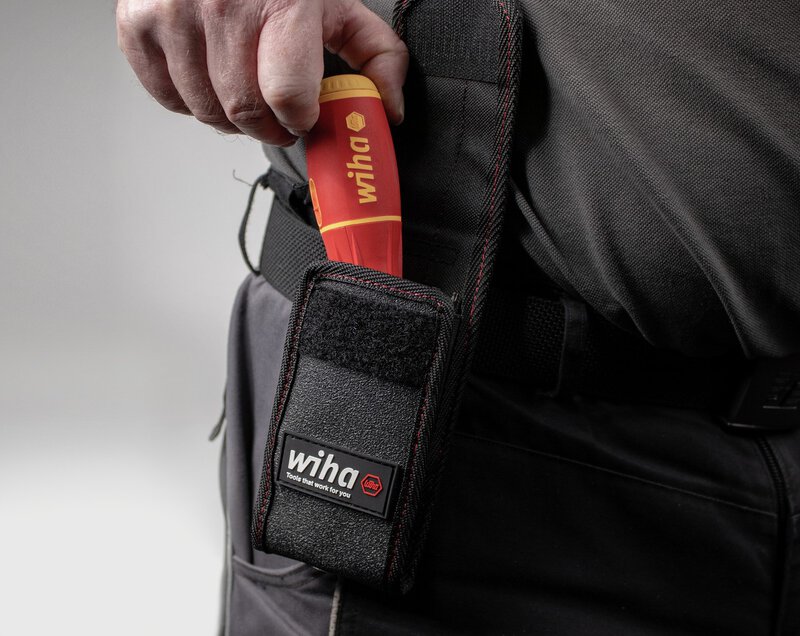• Vereinfacht Ihre Arbeit: Bietet Platz für einen Wiha E-Schraubendreher, sowie 4 slimBits.Öse am Taschenboden ermöglicht Aufbewahrung des E-Schraubendrehers mit eingestecktem Bit