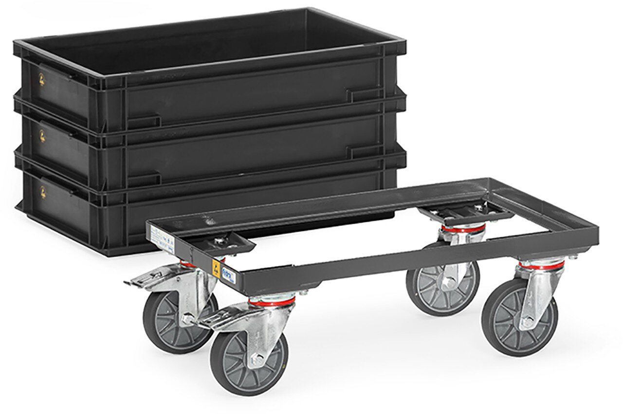 ESD-Eurokasten-Roller, Tragkraft 250kg, offener Rahmen, 605x405mm