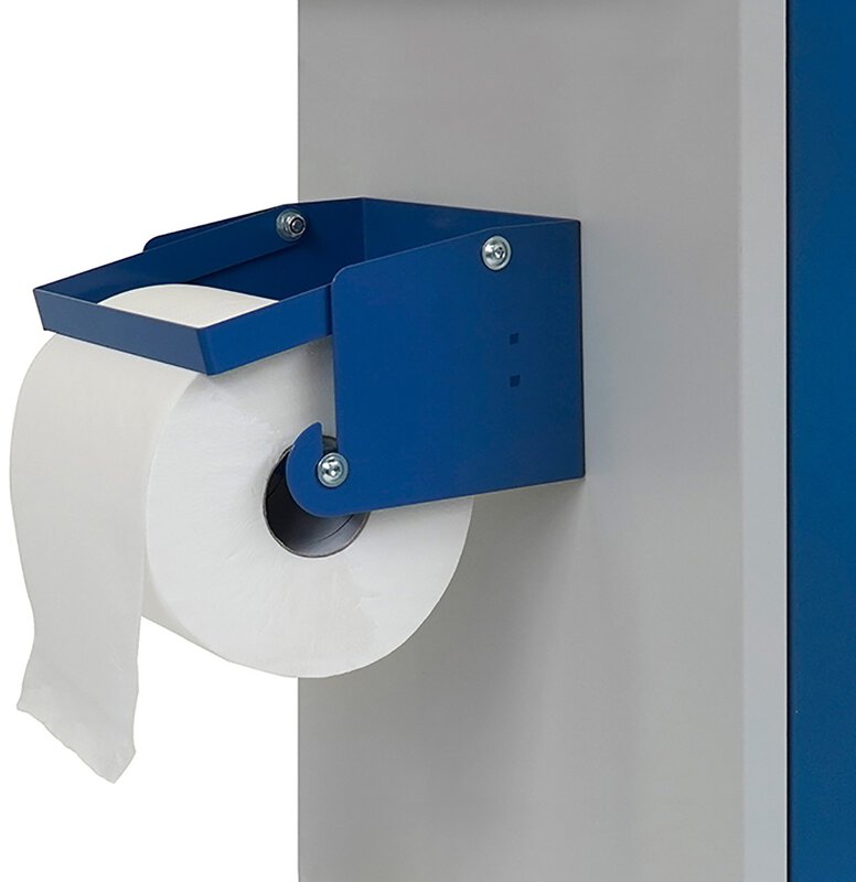 Papierrollenhalter als Anbausatz für Stahlblech-Werkstattwagen. Zusätzlich geeignet für die direkte Besfestigung an einer Wand. Pulverbeschichtet blau RAL 5007. Geeignet für Papierrollen bis 210 mm Durchmesser und 210 mm Breite. Die verzahnte Abrisskante erleichtert das Abtrennen einzelner Papierstücke. Aufnahmelochungen an den Seiten ermöglichen die zusätzliche Montage je einer fetra Desinfektionsmittelhalterung 1393 und einer Desinfektionsflaschenhalterung 1391. (Papierolle ist nicht im Lieferumgang enthalten). Für Modelle 2445, 2446, 2448, 2449, 2475, 2476, 2450/7016, 2452/7016, 2456/7016, 12450/7016, 12452/7016, 12456/7016, 5492, 5493, 5592, 5593, 5692, 5693
