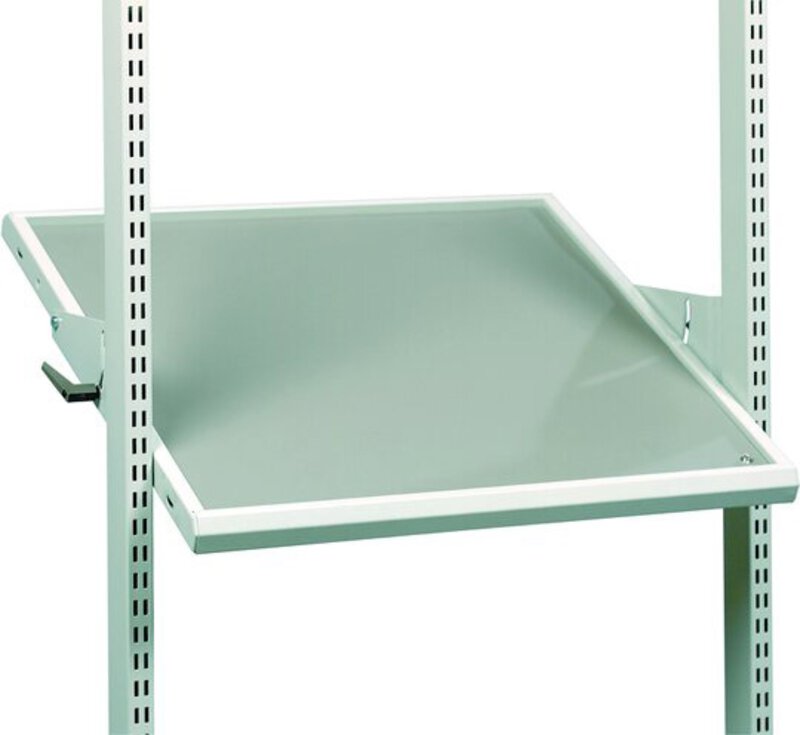 • Verstellbarer Regalboden aus Stahl mit ESD-Matte.