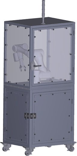 Die in der Beispielanwendung aufgezeigte geschlossene modulare Roboterzellen übernimmt u.a. komplette Anwendungen oder wird für die Ausführung von Teilprozessen in Produktionslinien integriert. Kombiniert werden hierbei sowohl Flexibilität, durch die kompakte Bauweise, als auch Sicherheit bei diversen Anwendungen wie beispielsweise bei der Durchführung von Lötprozesssen mit hohen Temperaturen.