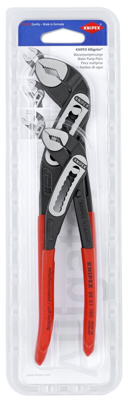 Im Lieferumfang für Art.-Nr. 00 31 20 V02 enthalten sind: 1 x Wasserpumpenzange 180 mm, 1 x Wasserpumpenzange 250 mm. Lieferumfang: 1 x 88 01 180 KNIPEX Alligator® Wasserpumpenzange, 1 x 88 01 250 KNIPEX Alligator® Wasserpumpenzange,