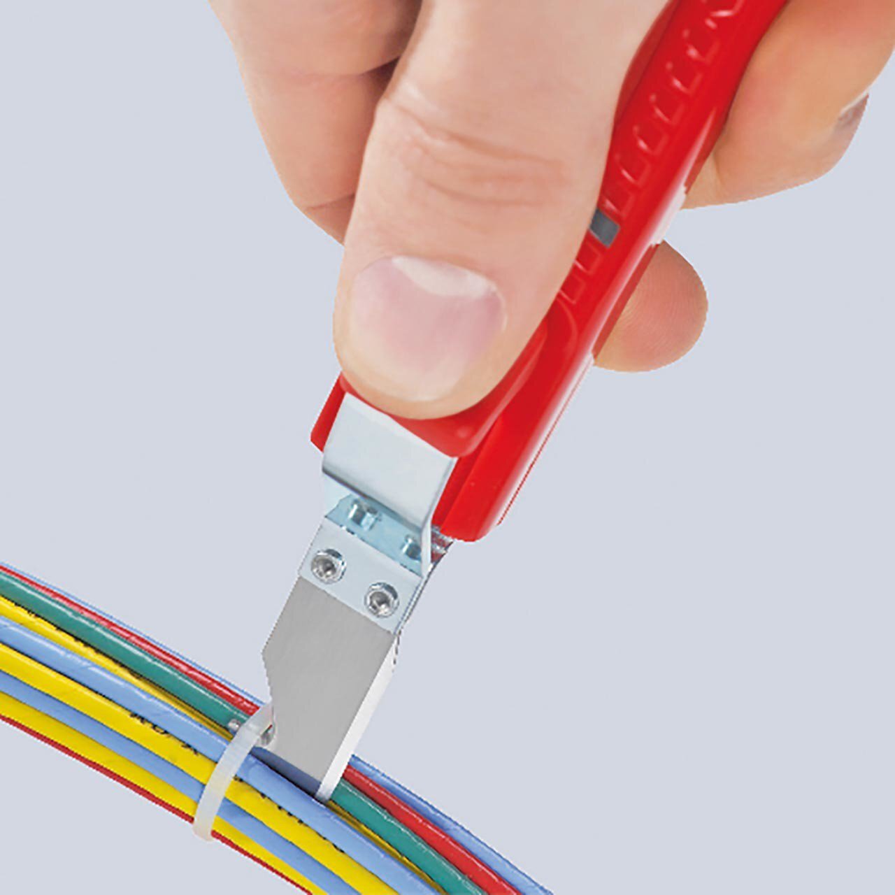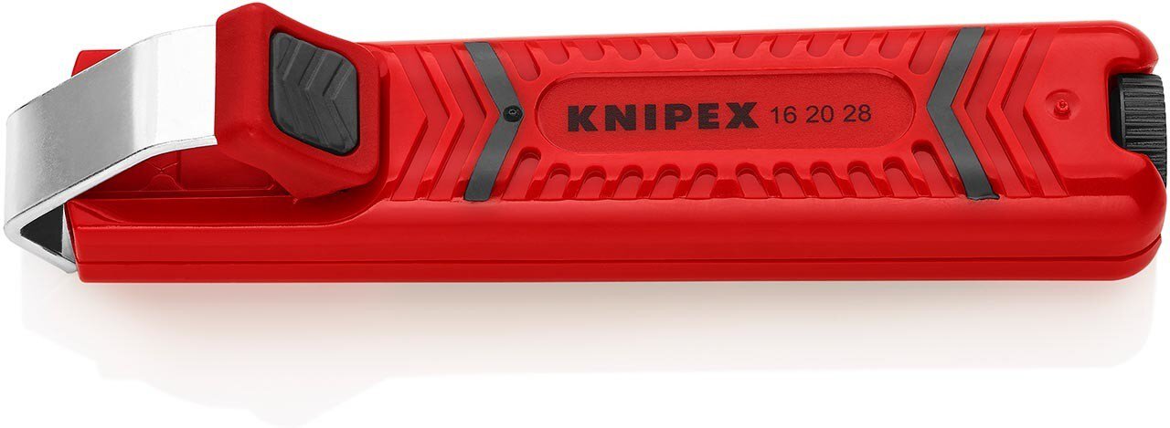 Der Abmantelungswerkzeug mit Schleppklinge Ø 8,0 - 28,0 mm, schlagfestes Kunststoffgehäuse, 130 mm, SB Verpackung von KNIPEX überzeugt durch präzise Verarbeitung und hohe Funktionalität. Entwickelt für professionelle Anwendungen, ermöglicht dieses Werkzeug ein müheloses und sauberes Abisolieren verschiedenster Leiter und Litzen. Zum Abmanteln aller gängigen Rundkabel Selbstspannender Festhaltebügel Mit Schnitttiefeneinstellung per Einstellschraube Selbstdrehende Schleppklinge für Umfangs- und Längsschnitt Reserveklinge im Gehäuse Griffsicherheit durch Weichkomponenten-Einlage als Abrutschschutz an Griff und Festhaltebügel Die robuste Bauweise und ergonomische Form sorgen für eine komfortable Handhabung und lange Lebensdauer. Ein unverzichtbares Werkzeug für Elektriker, Techniker und alle, die präzise und effiziente Arbeiten im Bereich der Kabelbearbeitung durchführen möchten.